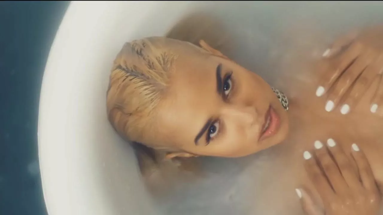 Solo blonde, Lexie Fux is using a glass dildo, in 4K
