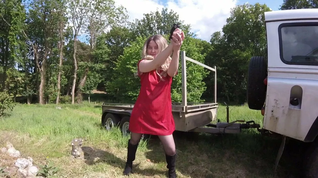 Star Trek Cosplay Blonde Ensign Haley Outdoors in pantyhose