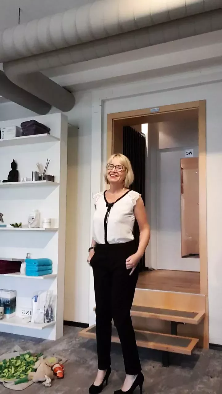 Cheerful Lukerya again puts on fishnet stockings for black underwear.