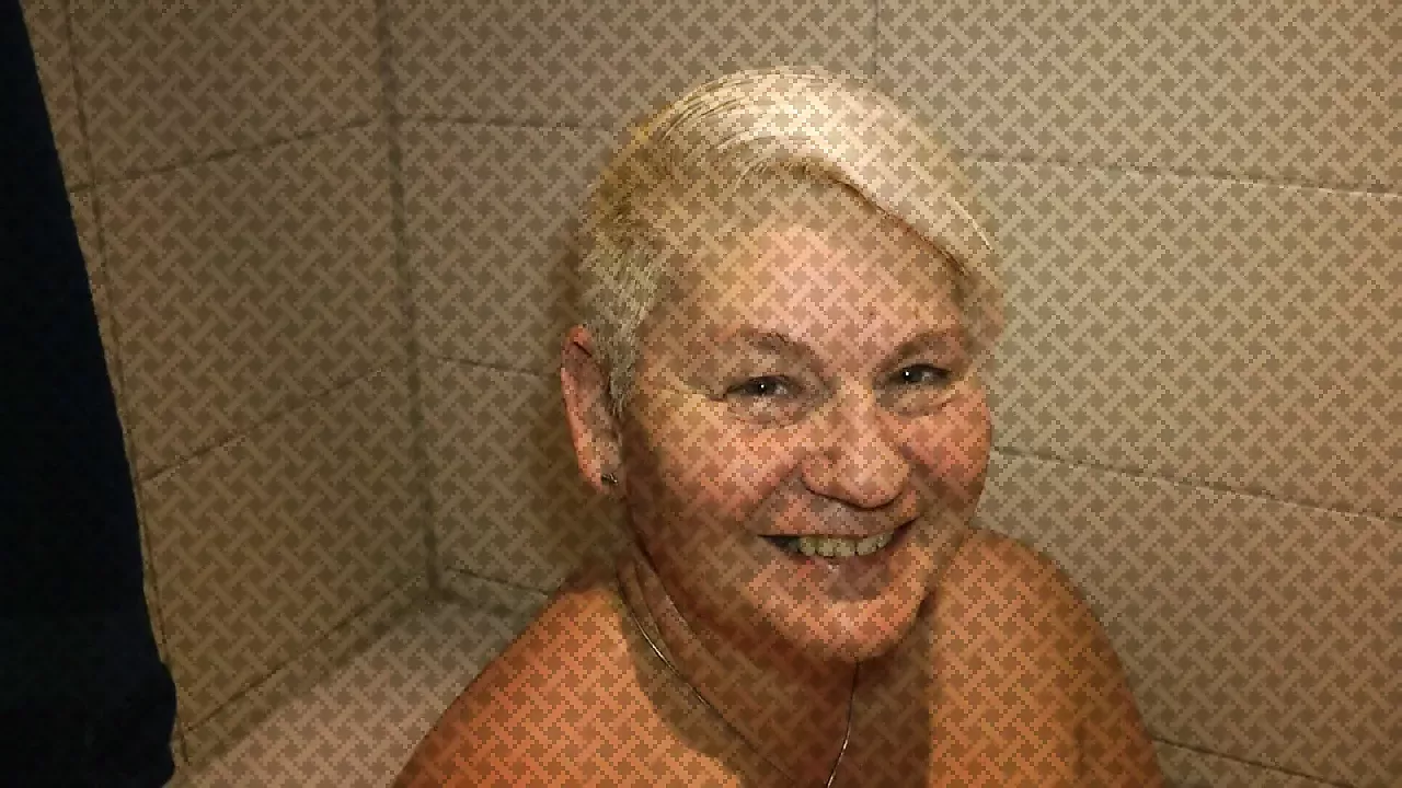 Cheerful Lukerya again puts on fishnet stockings for black underwear.