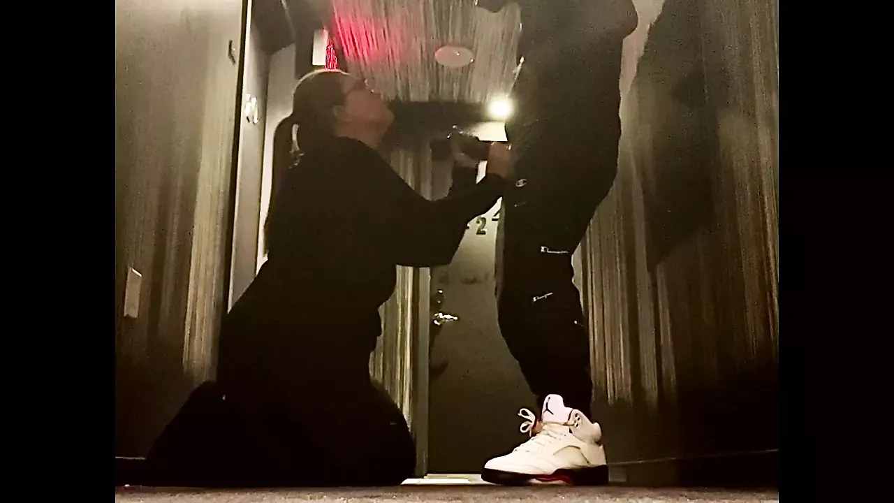 Thick White Wife Sucks Random Black Cock In Hotel Hallway