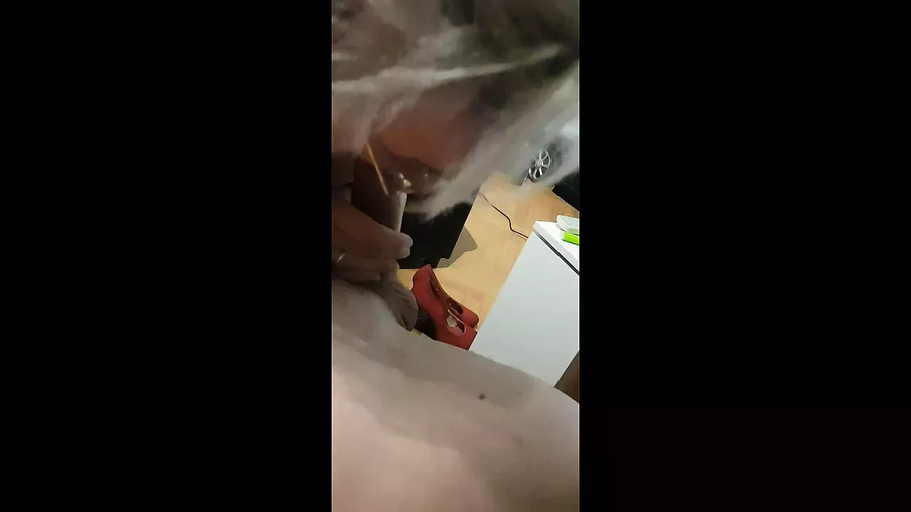 Giving my moaning fiancé a before work sock job????????????
