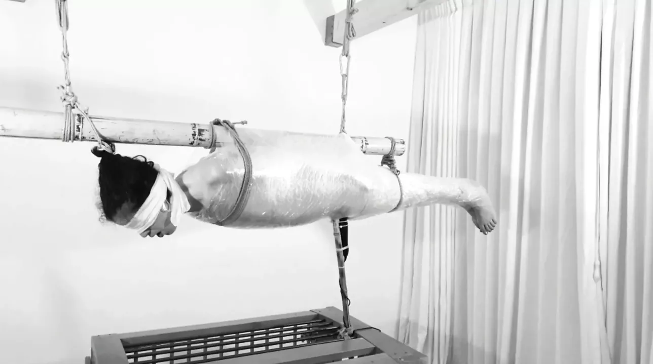 Wrapped & Trapped: CRAZY shaking orgasm in plastic wrap suspension! Bdsmlovers91