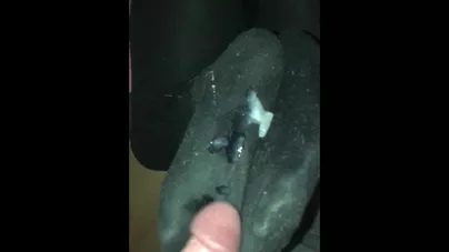 Black nylon footjob