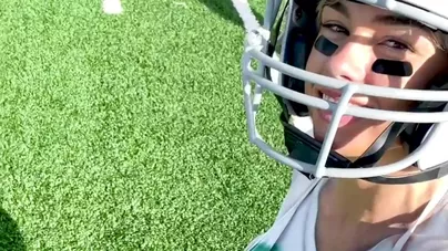 Cheerful Lukerya again puts on fishnet stockings for black underwear.