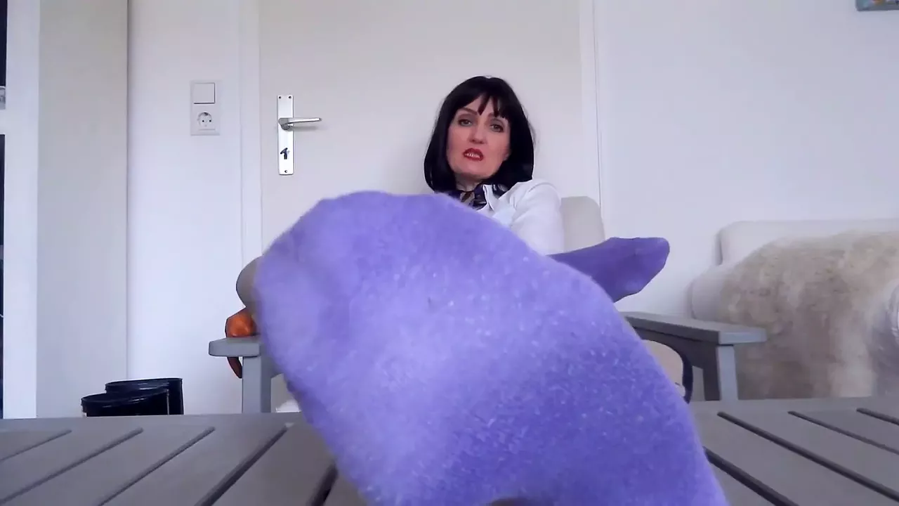 Intensive stinky sock sniffing training and allowed to cum on socked feet