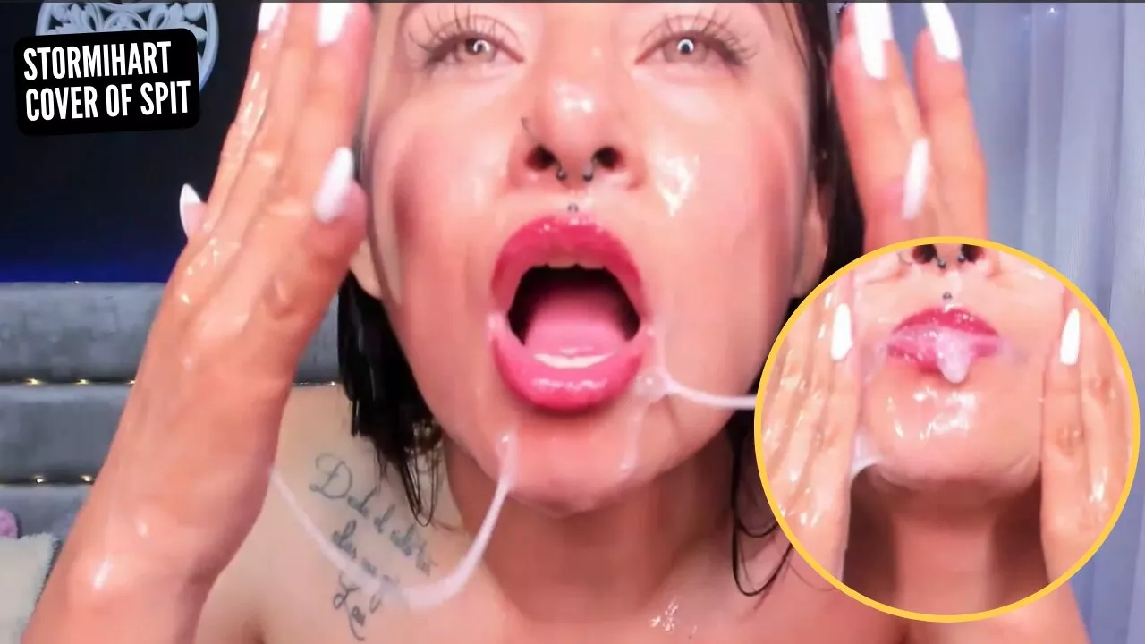 VERY MESSY COVERED ALL MY FACE, MY TITS AND MY BODY WITH SALIVA AND SEMEN, A LOT OF GAG STORMIHART COLOMBIAN MODEL WEBCA