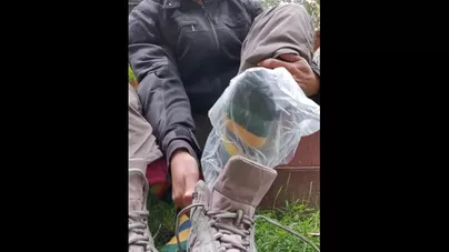 Biker chick takes off her dirty sneakers and socks after a long journey. Tik Tok