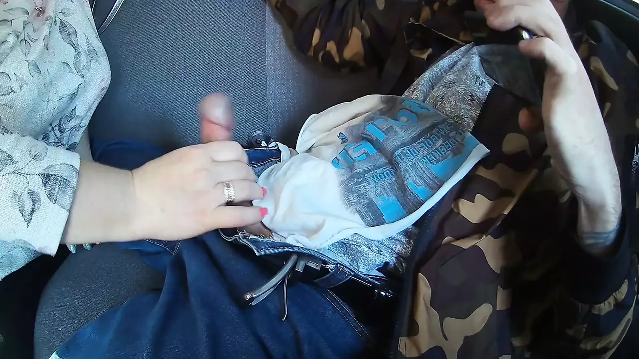 fat woman in the backseat sucks and jerks off my cock