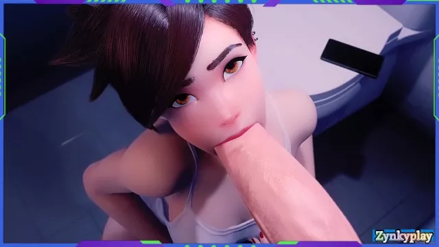 Overwatch Dva date in public bathroom and her friend tracer suck big cock and cum in her pussy