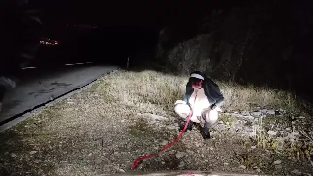 Piss Slut Wife in a Nun costume with a dog collar around her neck receives a golden shower her mout