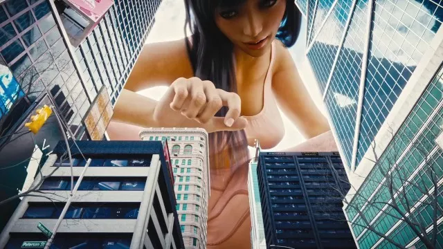Beautiful Mega Giantess Grows and Play with a Tiny City