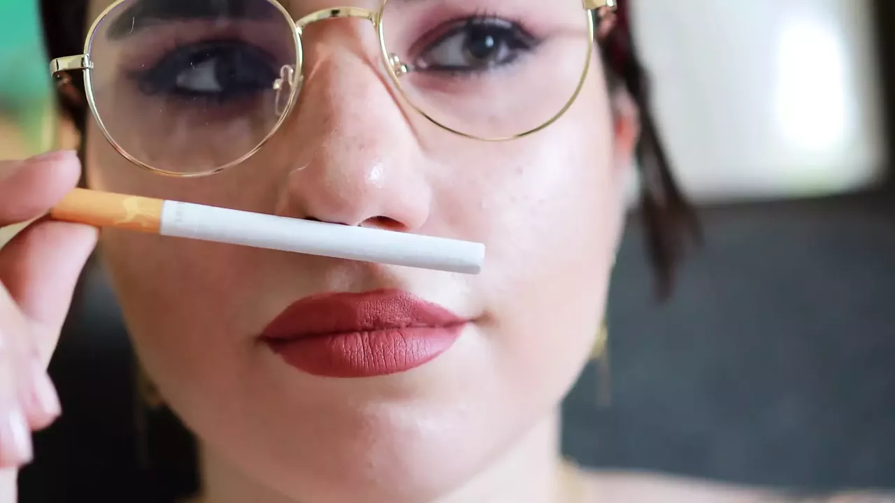 Naked Tattooed Model Smokes Camel s100 cigarette