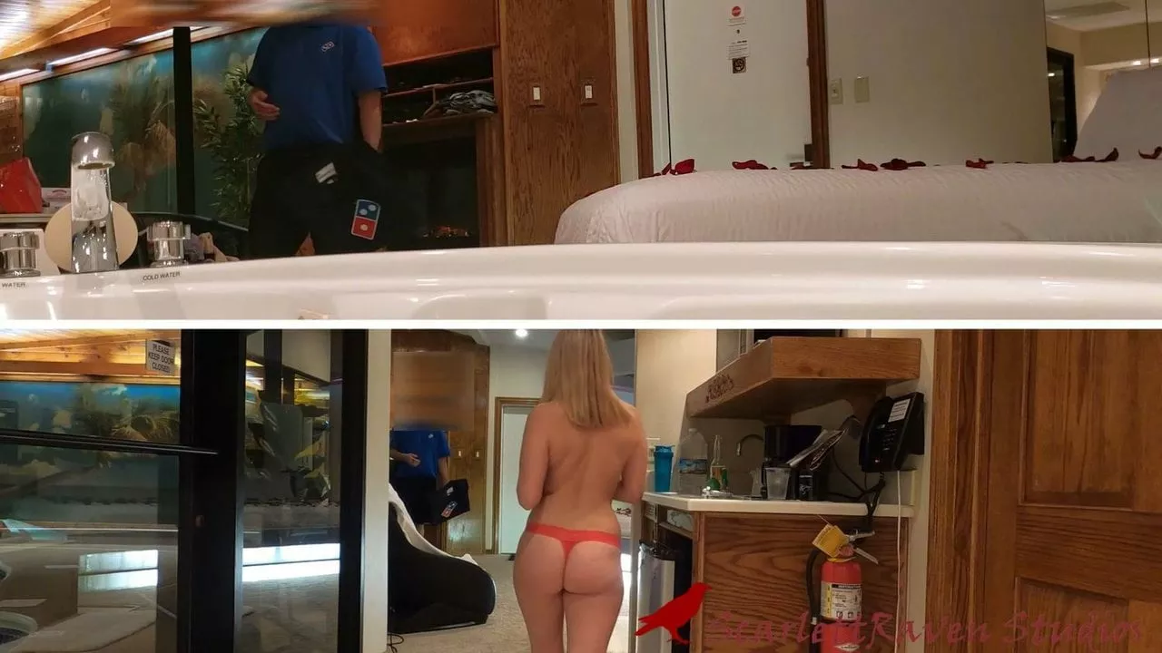 Flashing Pizza Delivery Man. Pizza Deliver Dare